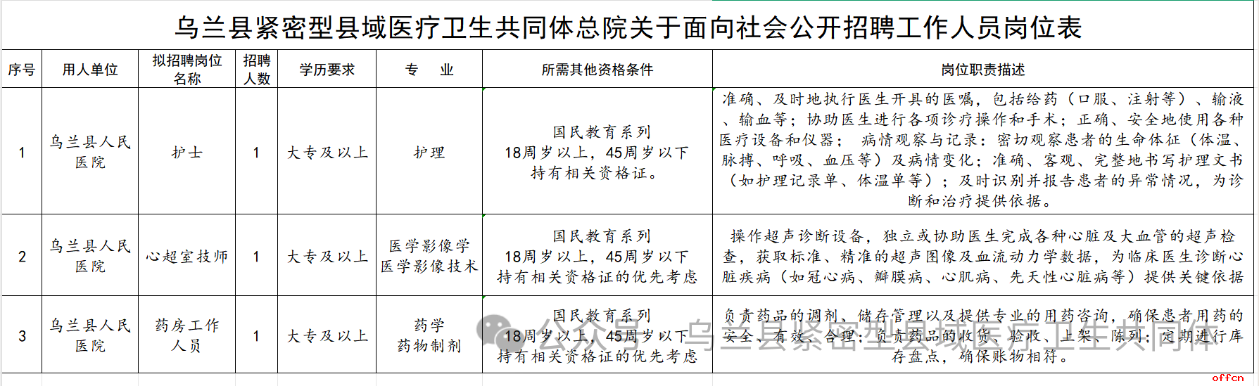 原文标题:乌兰县紧密型县域医疗卫生共同体总院面向社会公开招聘工作人员的公告